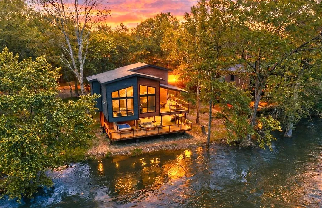 Serenity Shores Modern Cabin On A River Broken Bow Eagletown offers guests a relaxing experience with a hot tub.